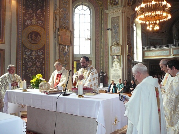 Alături de Preasfinţitul Mihai și de Preasfinţitul Petru Gherghel au concelebrat pr. Mihai Husaru, pr. Alois Fechet, pr. Iosif Enăşoae şi pr. Andrei Mărcuş.