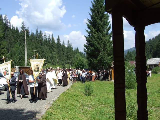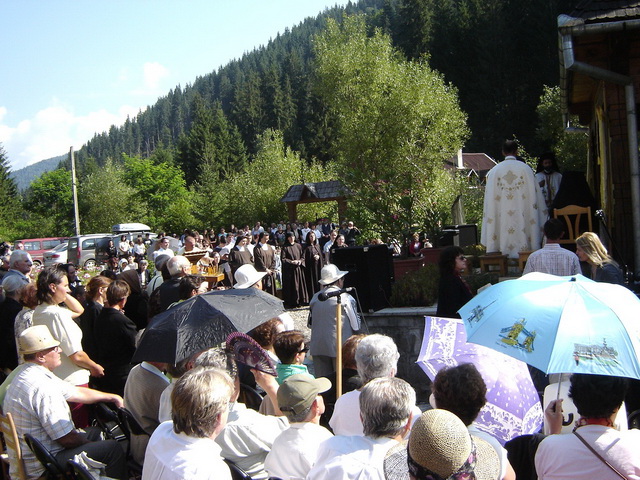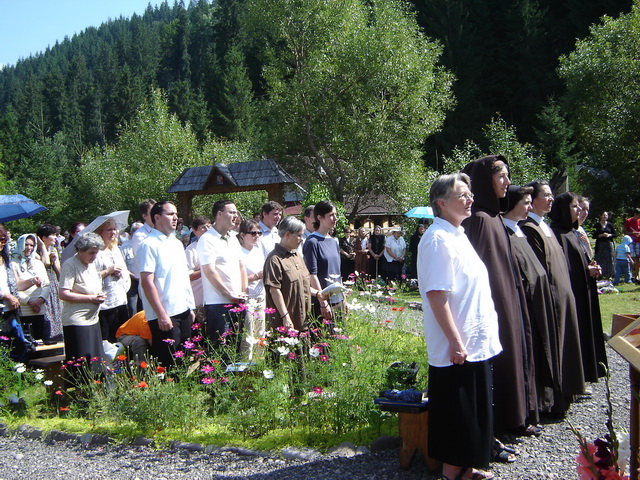 A doua zi, dimineaţa, a sosit pentru slujirea Sfintei Liturghii şi Preasfinţia Sa Mihai Frăţilă, episcop auxiliar de Blaj, cu reşedinţa la Bucureşti. Erau prezenţi cam două sute cinzeci de pelerini, veniţi din locuri diferite, din Bucureşti, din Ungaria, din Franţa … Alături de cei doi ierarhi au slujit un număr de patru preoţi din eparhia locului, un preot şi un diacon din eparhia de Cluj-Gherla, un preot din cea de Miskolc şi un preot iezuit din Belgia. Ca în anii anteriori, prestaţia corului Parohiei I din Târgu Mureş a făcut mai solemnă celebrarea. Predica Preasfinţitului Mihai a adus în atenţie tema bucuriei, o notă specifică a acestei sărbători, dar şi a vieţii creştine. În finalul Sfintei Liturghii, Preasfinţitul Atanasz a subliniat în schimb motivul luminii, al iluminării, la care această sărbătoare ne invită să fim părtaşi.
