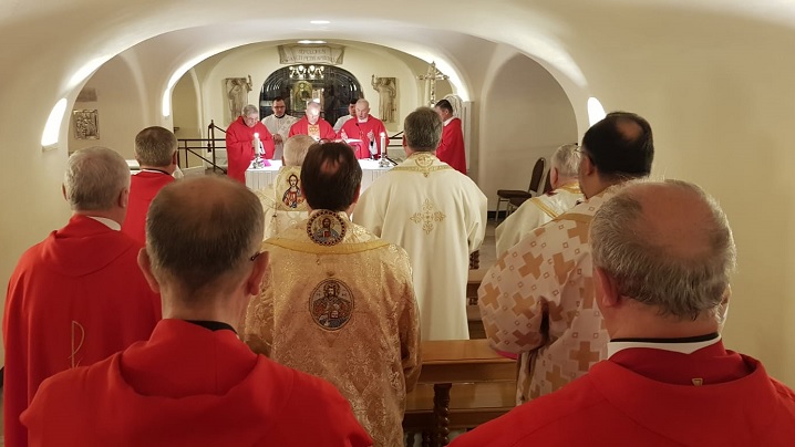Celebrarea Sfintei și dumnezeieștii Liturghii la mormântul Sfântului Petru este unul din momentele principale ale vizitei ad limina apostolorum, care este constituită din: pelerinaj la mormântul Sfântului Apostol Petru, primul Papă, întâlnire cu Pontiful Roman și vizitarea Dicasterelor Curiei Romane.