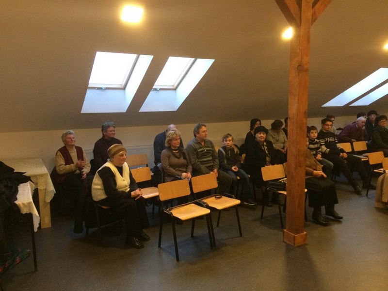 După terminarea Maslului, cu toții, preoți și laici, s-au retras în sala de conferințe a căminului cultural unde au dat cinste Domnului intonând colinde și luând parte la o mică agapă frățească.