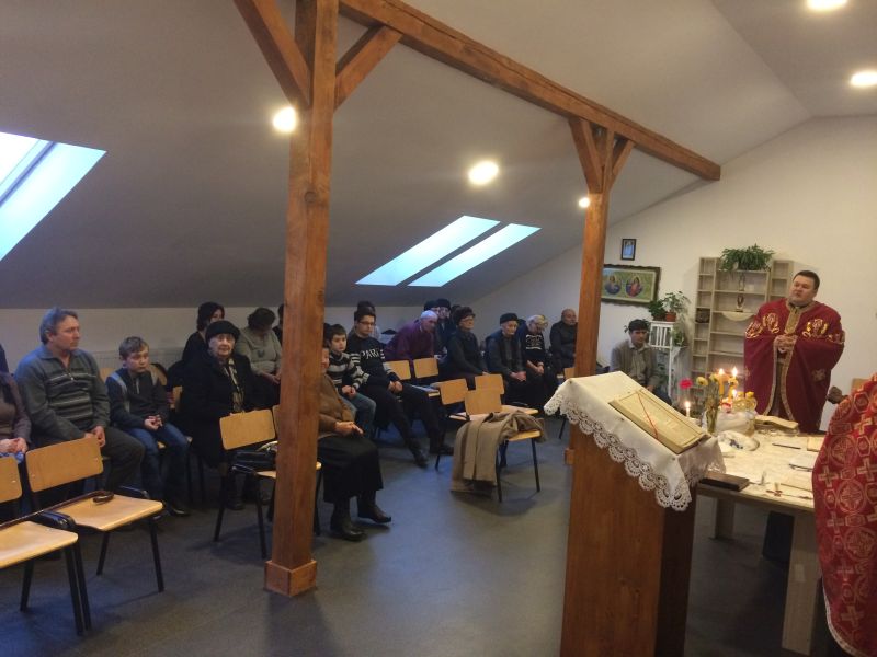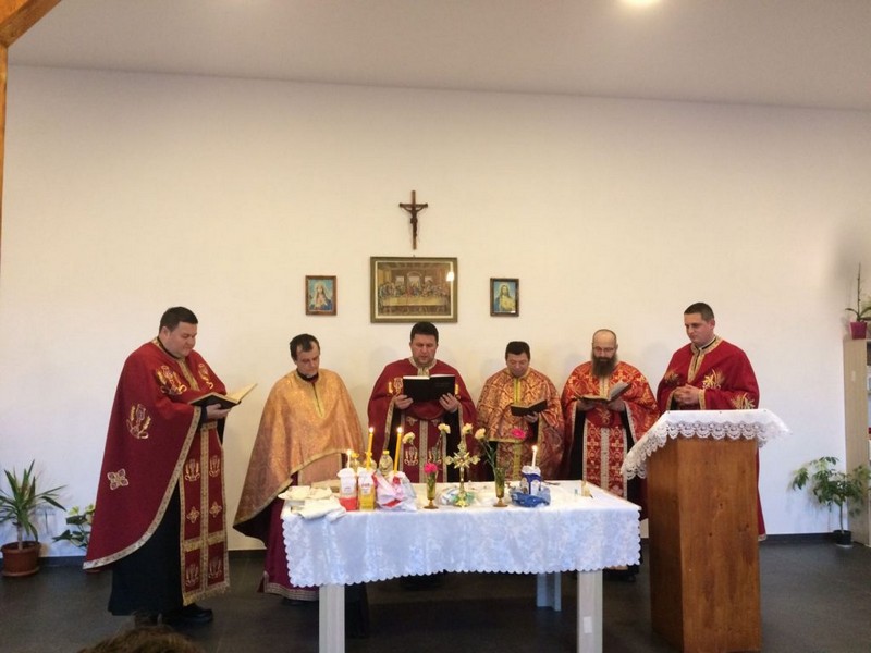 Celebrarea a avut loc în Capela amenajată în una din încăperile căminului cultural din localitate, primită spre utilizare în această toamnă prin bunăvoința primăriei comunei Unirea, deoarece după obișnuita meteahnă împământenită la nivel național, Biserica veche din localitate nu a fost retrocedată de către confrații ortodocși.