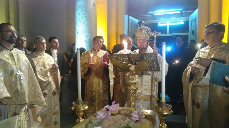Sute de credincioşi greco-catolici au fost prezenţi la slujba de Înviere celebrată la Catedrala “Sfânta Treime” din Blaj de Preasfinția Sa Claudiu, episcopul Curiei Arhiepiscopale Majore, alături de un sobor de preoţi.