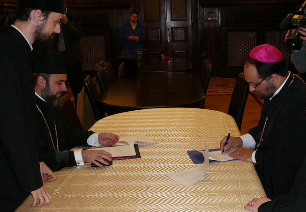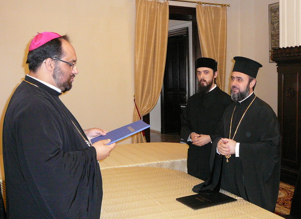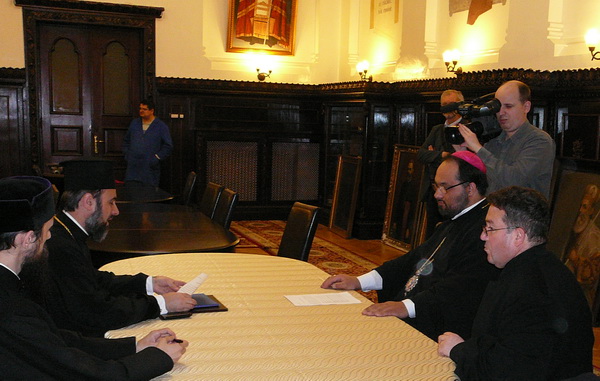 Întâlnirea a avut loc în sala „Conon Mitropolitul” a Palatului Sfântului Sinod de la Mănăstirea Antim. Din partea Bisericii Greco Catolice a participat o delegaţie formată din Prea Sfinţia Sa Mihai, Episcopul Vicar al Bucureștilor, pr. Valeriu Median, pr. Andrei Mărcuş şi domnul Mircea Dunca, cercetător la Muzeul Naţional de Artă al României. Biserica Ortodoxă Română a fost reprezentată de Preasfinţia Sa Ciprian, Episcop Vicar Patriarhal, şi de arhimandritul Policarp Chiţulescu, directorul Bibliotecii Sfântului Sinod.