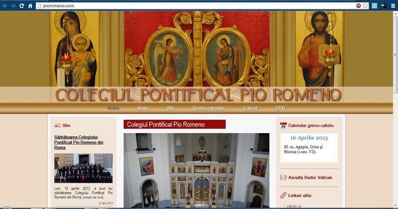 Luni, 15 aprilie 2013, cu ocazia sărbătorii Colegiului Pontifical Pio Romeno din Roma a fost lansat site-ul oficial al instituției pontificale.