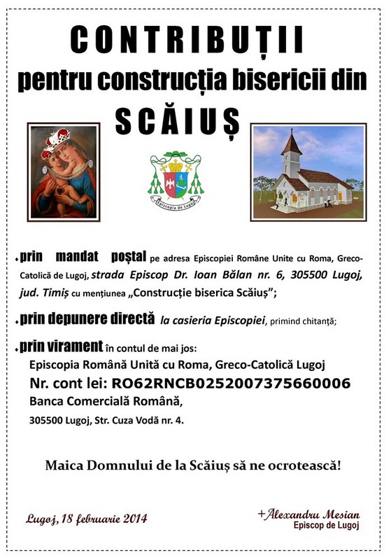 Anunţ: contribuţii pentru construcţia bisericii din Scăiuş
