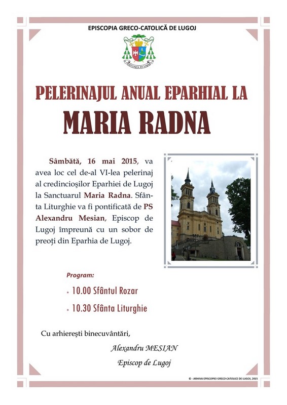 Anunţ: pelerinajul anual eparhial la Maria Radna