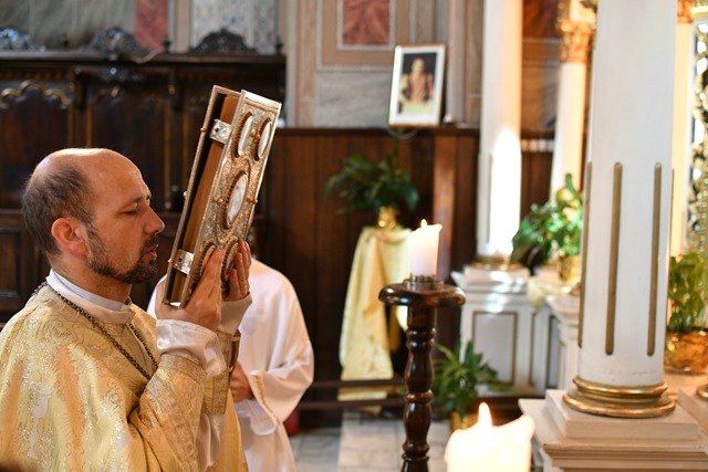 După acest moment, a început Sfânta Liturghie celebrată de Mons. Angelo Narcis Pop- Vicar General şi de pr. prot. On. Ioan Pop, parohul catedralei.