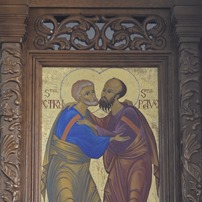 În Biserica din Cugir cei doi sunt reprezentați îmbrățișați în partea dreaptă a iconostasului. Pornind de la acestă îmbrățișare, părintele paroh poartă mesajul înspre acela de comuniune între Biserica Catolică și cea Ortodoxă. Așa cum pentru unii creștini Sfântul Petru reprezenta partea apuseană a lumii crestine, iar Sfântul Pavel pe cea răsăriteană, şi sunt reprezentați îmbrățișați, ca doi frați, așa ar trebui să fie și cele două Biserici.