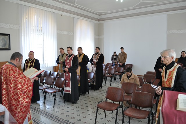 În jurul amiezii a avut loc Sfânta Liturghie săvârşită în Capela Centrului Pastoral „Sfântul Vasile cel Mare” de către rvs. pr. Alexandru Ploştinaru.