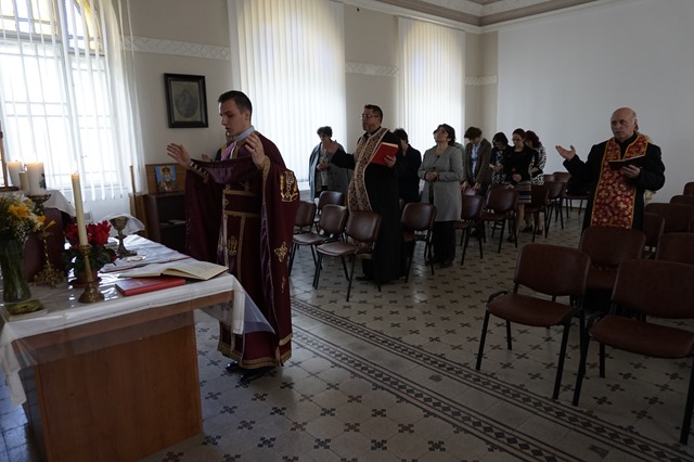 În jurul amiezii a avut loc Sfânta Liturghie săvârşită în Capela Centrului Pastoral „Sfântul Vasile cel Mare” de către pr. Petrişor Gherghel.