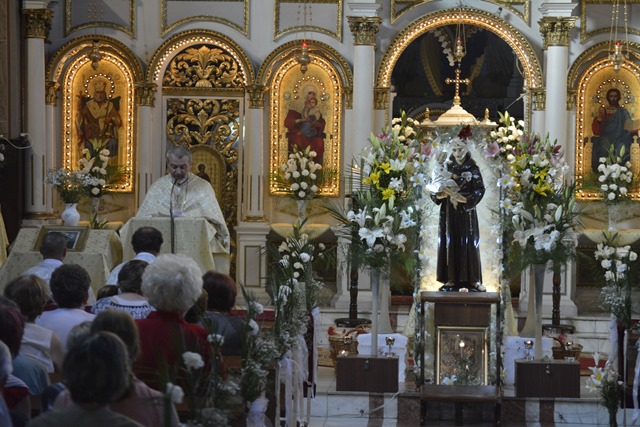 Predica a fost ţinută de Pr. Ioan Pop care a prezentat viaţa Sfântului Anton de Padova. Citând din audiența generală a Sf. Părinte Papa Francisc din 19 noiembrie 2014, despre sfințenie pr. Ionică le-a spus credincioșilor: „Fiecare stare de viață duce la sfințenie. Trăind cu iubire şi oferind propria mărturie creștină în ocupațiile de zi cu zi suntem chemați cu toți să devenim sfinți, fiecare în condițiile şi starea de viață în care ne aflăm.”