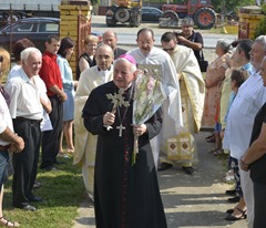 Pr. paroh Gabriel a mulţumit mai întâi bunului Dumnezeu. A mulţumit, participanţilor: Prea Sfinţitului Alexandru, Mons. Angelo şi preoţilor care au concelebrat. A mulţumit celor care au contribuit financiar la restaurarea bisericii şi la sărbătoarea hramului. A mulţumit tuturor celor care au binevoit ca să fie alături la bucuria acestui eveniment.