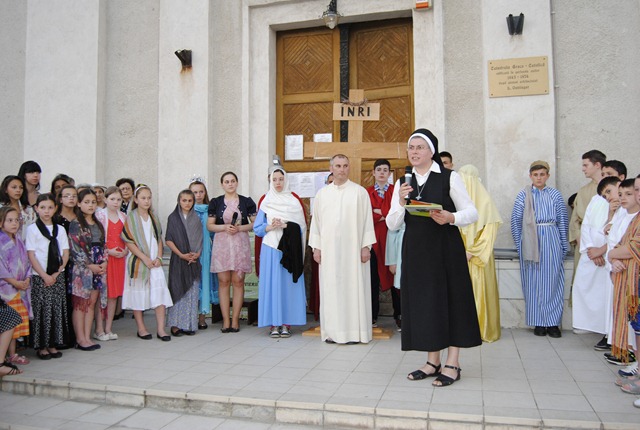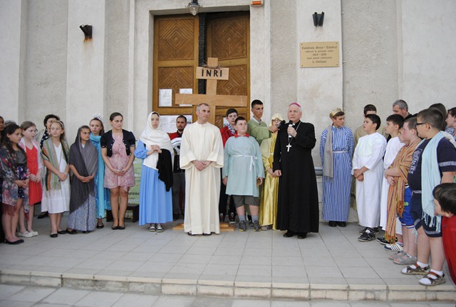 Este deja o tradiţie de ani buni ca în Sfânta şi Marea Miercuri a Paştilor la catedrala din Lugoj în cadrul rugăciunii „Calea Crucii” copiii şi tinerii de la religie să parcurgă drumul staţiunilor având diverse roluri specifice unei scenete dar în acelaşi timp păstrând ambientul de rugăciune. Anul acesta, în premieră, o mare parte din scenetă (drumul staţiunilor) s-a desfăşurat afară în jurul bisericii. Aşadar miercuri, 1 mai de la orele 18.30, copiii împreună cu credincioşii s-au rugat într-un mod aparte. A fost prezent P.S. Alexandru Mesian, Episcop de Lugoj, Mons. Angelo-Narcis Pop, Vicar General, pr. Teodor Baba, Protopop de Lugoj, pr. prot. on. Ioan Pop, parohul catedralei şi mulţi credincioşi de diferite confesiuni.