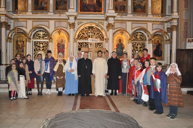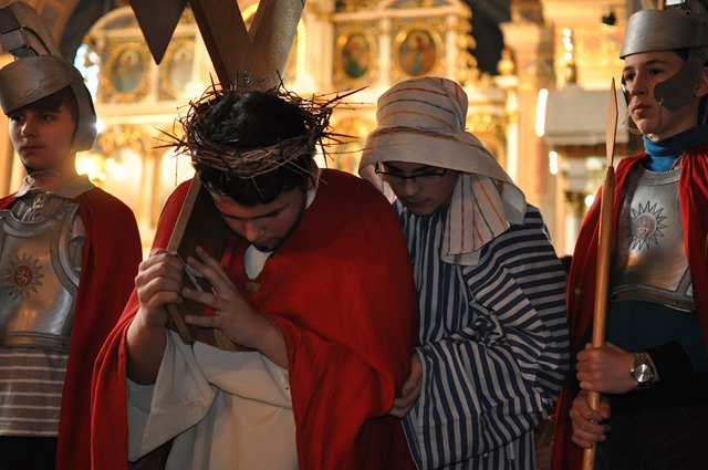 Copiii și tinerii pregătiți de Sr. Valeria Bolfă, OSBM, au redat cât mai profund această dramă a suferințelor Lui Isus Cristos încât mulți credincioși erau profund marcați și aveau lacrimi în ochi.