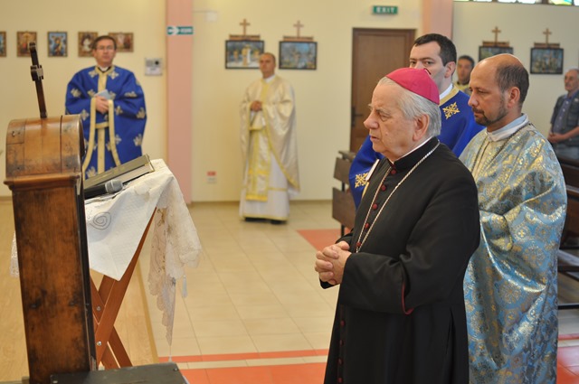 Vizita a început cu parohia Petroşani unde s-a săvârşit Sfânta Liturghie Arhierească. Biserica din Petroşani a fost sfinţită în urmă cu patru ani la 10 iulie 2010 de către P.S. Alexandru Mesian şi P.S. Virgil Bercea, Episcop de Oradea. La Sfânta Liturghie, alături de P.S. Alexandru au concelebrat: Mons. Angelo-Narcis Pop, Vicar general, pr. Adrian Nagy, protopop de Lupeni, pr. Leonard Bulzan, paroh la Vulcan, pr. Vasile Solomon, parohul locului, pr. Dorin Szilvester, paroh la Bărbăteni, pr. Sabo Sorin, paroh la Deva, pr. Daniel Solomon, paroh la Tuştea şi pr. Goşea Mariuş Aristică, paroh la Recanati (Italia). Răspunsurile la Sfânta Liturghie au fost date de Ipod. Nicuşor Poroabă.