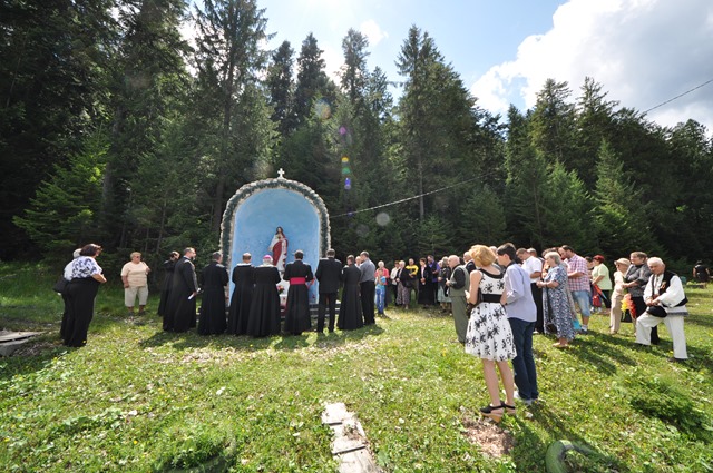 După sfințirea locului de biserică, pelerinii s-au deplasat cu diferite mijloace de transport spre locul de pelerinaj de la Brădet-Câmpul lui Neag. Acest pelerinaj anual ajuns la a XXIII-a ediţie, este fixat în luna august în duminica de după sărbătoarea Adormirii Maicii Domnului. Prima oprire la Câmpul lui Neag a fost la Statuia Preasfintei Inimi a lui Isus unde s-a rostit rugăciunea de Consfinţire la Preasfânta Inimă a lui Isus, urmată de cântece în cinstea Preasfintei Inimi a lui Isus. Cu toţii au pornit în procesiune spre statuia Sfintei Fecioare Maria de la Lourdes, unde s-a rostit Sfântul Rozar şi rugăciunea de Consfinţire la Inima Neprihănită a Mariei urmate de cântece mariane. În încheiere PS Alexandru, de sus din faţa Statuii Maicii Domnului, a dat binecuvântarea pelerinilor şi a urat La revedere la pelerinajul din 2015.