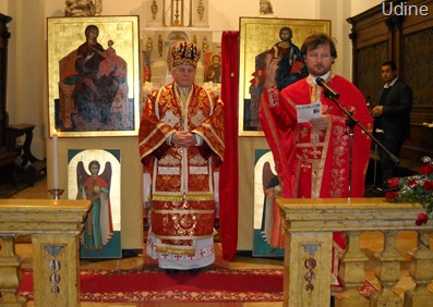 Astfel în ziua duminică, 7 aprilie P.S. Alexandru a fost primit la Udine de pr. Mărginean Cociş Ioan, parohul comunităţii. Dimineaţa a slujit Sfânta Liturghie Arhierească a Sf. Vasile cel Mare, în biserica „San Cristoforio” la parohia românească „Învierea Domnului” din Udine, iar seara, în aceeaşi biserică, a avut loc conferinţa. Au participat Excelenţa Sa Mons. Andrea Bruno Mazzocato, Arhiepiscop de Udine, Dl. Cosmin Dumitrescu, Consulul general al României la Trieste şi primarul Furio Honsell. S-a ţinut un minut de reculegere în memoria martirilor români care şi-au dat viaţa pentru credinţă.