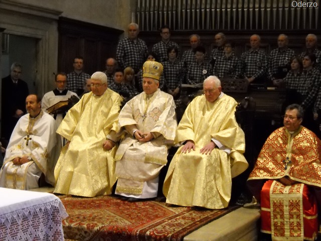 În ziua de 13 aprilie P.S. Alexandru s-a aflat la Oderzo, unde după prezentarea cărţii, a avut loc o Sfântă Liturghie solemnă în rit latin în domul din Oderzo pontificată de P.S. Alexandru. Distinsul ierarh a oferit crucea pectorală mons. Piersante Dametto. Paroh în Oderzo este Pr. Marian Gheorghe.