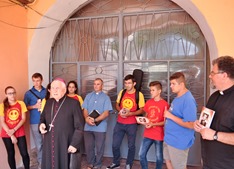 În ziua de 8 iulie a.c. Prea Sfinţitul Alexandru a primit vizita unui grup de tineri de la liceul „Don Orione”, Oradea împreună cu un grup de absolvenţi teologi. Aceşţia au fost însoţiţi de pr. Florian Gui, din Eparhia de Oradea şi de pr. Cristian Chişvasi, paroh la Vărădia.