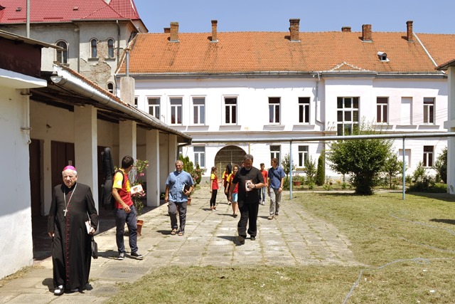 După prânz grupul a vizitat curtea Palatului episcopal. PS Alexandru le-a vorbit elevilor despre istoria Bisericii Române Unite, în special despre istoria Eparhiei de Lugoj şi a palatului Episcopal. Le-a spus tinerilor despre jubileul de 160 de ani de la întemeierea Eparhiei de Lugoj, eveniment ce a avut loc la 23 noiembrie 2013, când au fost depuse osemintele episcopului martir Ioan Bălan în catedrala din Lugoj şi când a avut loc un Simpozion Omagial cu ocazia aniversării a 160 de ani. Vizita a continuat în parcul episcopiei.