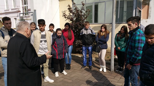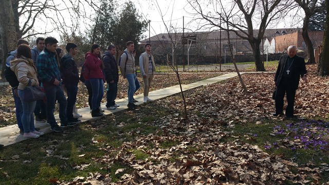 Vizita a continuat în parcul episcopiei apoi elevii au fost invitați în sala mare a palatului episcopal unde PS Alexandru le-a vorbit despre cei 9 episcopi predecesori ai Eparhiei de Lugoj.
