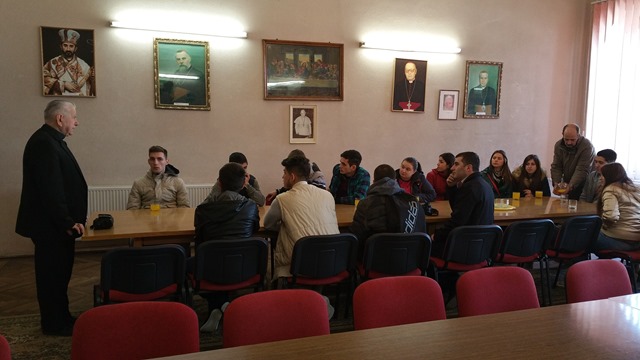 În ziua de 11 martie a.c. Prea Sfinţitul Alexandru a primit vizita unui grup de elevi ai clasei a XII-a de la Colegiul Tehnic „Valeriu Branişte” din Lugoj. Vizita propusă de dl. prof. de religie Ciprian Blaj a urmărit asumarea – dincolo de băncile şcolii – a unor cunoştinţe generale despre Biserica Greco-Catolică din România şi despre Eparhia de Lugoj.