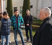 Grupul de elevi a sosit în jurul amiezii la ora 12.30. Prea Sfinţitul Alexandru i-a întâmpinat şi i-a condus în curtea Palatului episcopal unde elevii s-au arătat interesaţi de câteva probleme de credinţă. Aceştia au adresat întrebări Prea Sfinţitului Alexandru legate de existenţa lui Dumnezeu, de crearea lumii, despre liberul arbitru şi altele. Prea Sfinţia Sa a răspuns pe larg şi cu bucurie acestor întrebări.