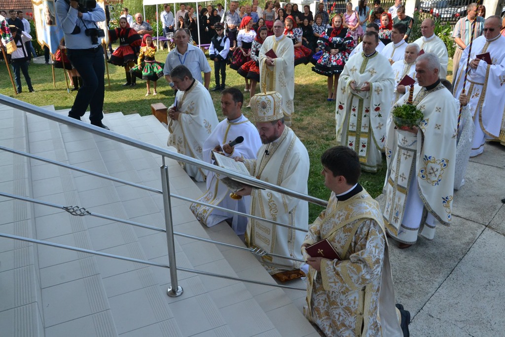 Ceremonia de sfințire a fost urmată de Sfânta Liturghie celebrată de Preasfinția Sa în interiorul bisericii, avându-i alături pe Pr. Marian Rednic, păstorul comunității din localitate, Pr. Iacob Feier protopop de Țara Oașului, și un mare număr de preoți veniți la sărbătoare.